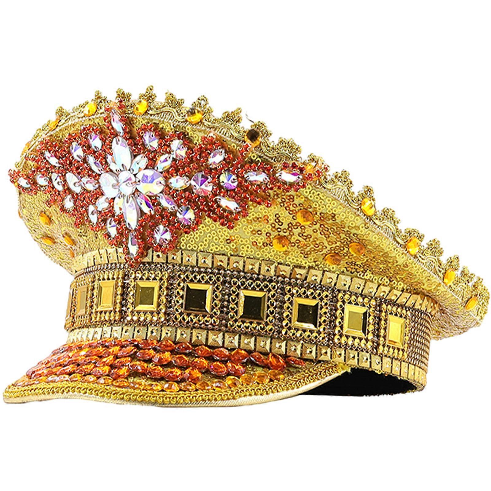Fashion Wedding Hat Prom Party Military Bride Hat with Sequins/ Rhinestone Wedding Hat for Carnivals Bachelorette Party Gold