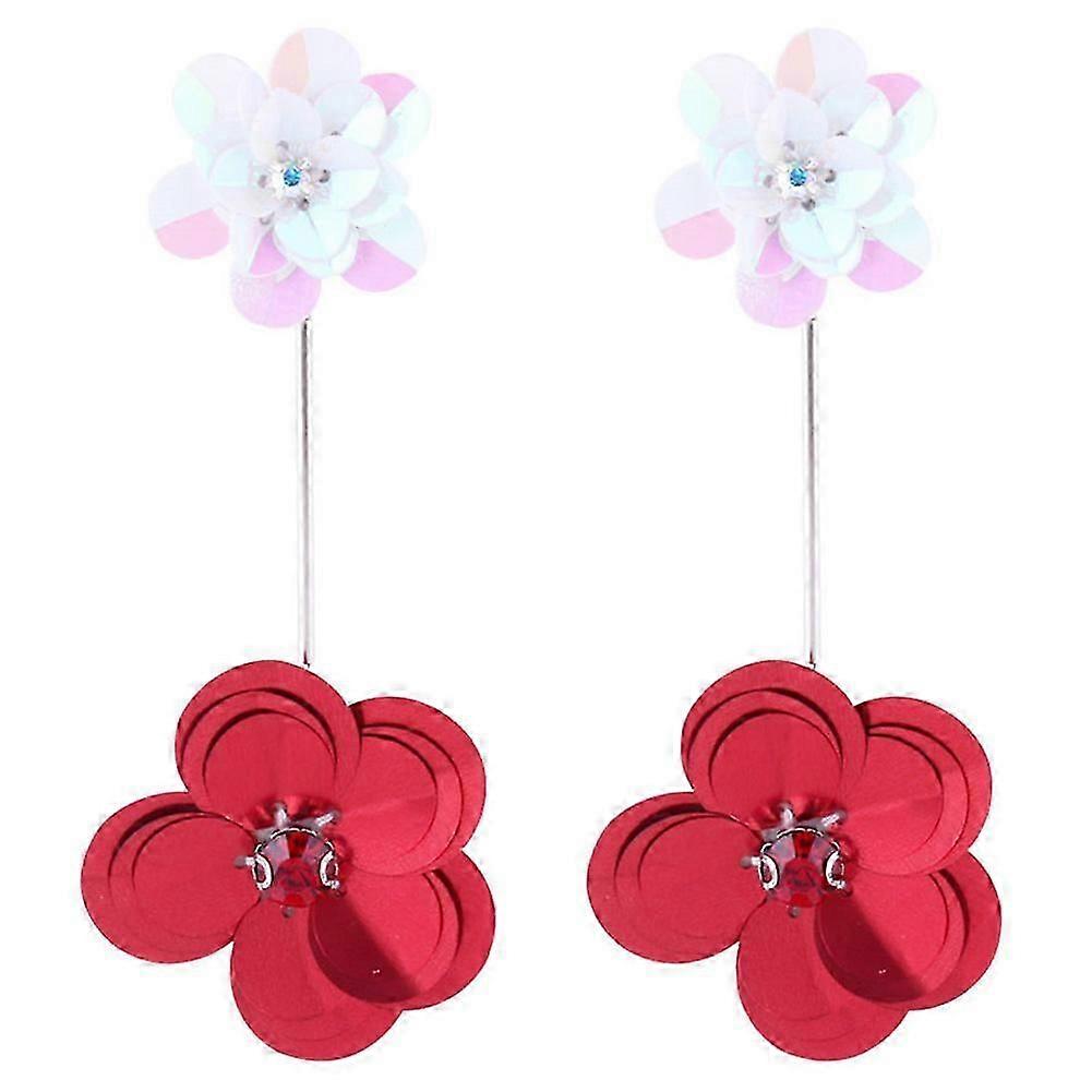 Fashion Western Style Plastic Flower Pendant Rhinestones Long Alloy Woman Earring(Red)