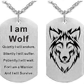 Fashion Wolf Pendant Necklace I Am Wolf Fans Gift Dog Tag Jewellery Keychain