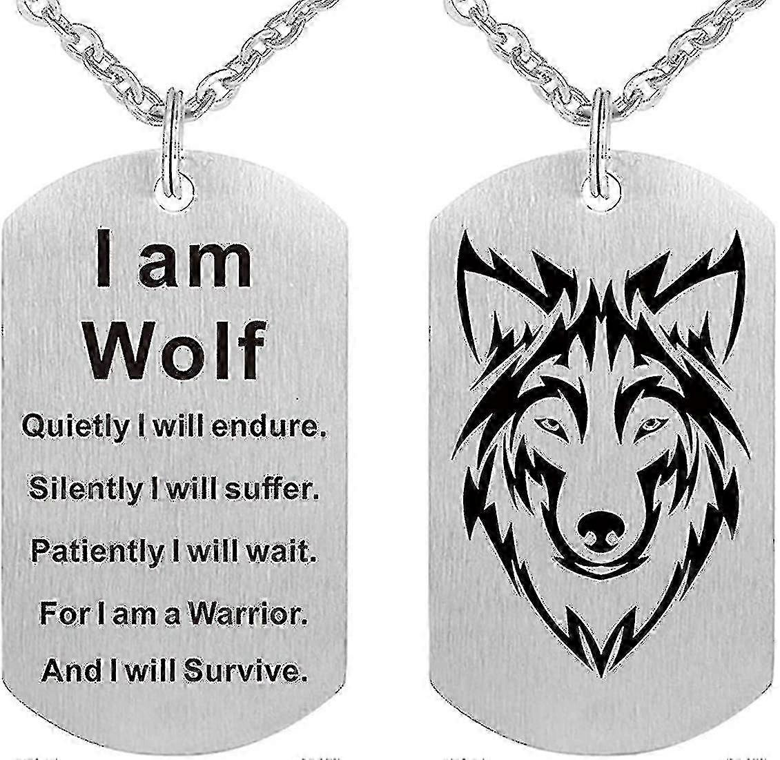 Fashion Wolf Pendant Necklace I Am Wolf Fans Gift Dog Tag Jewellery Keychain