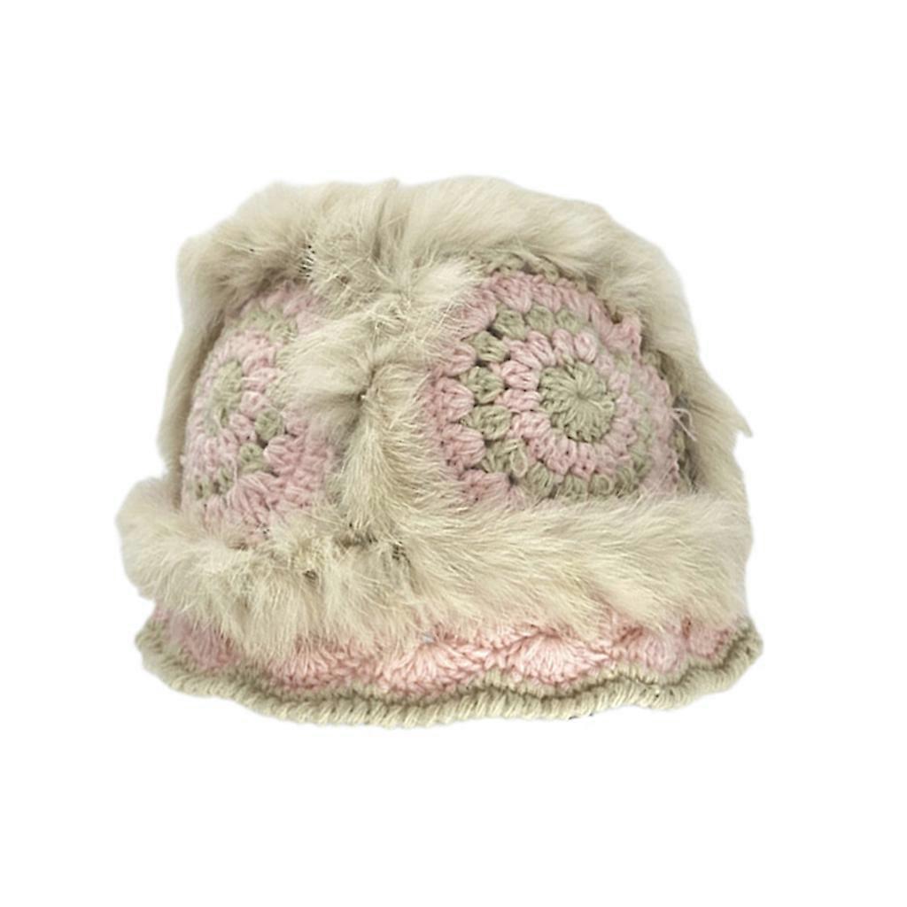 Fashion Casual Handmade Crocheted Flower Pot Hat Plus Velvet Warm Knit Fisherman Hat Bucket Hat Foldable Show Face Small Pink