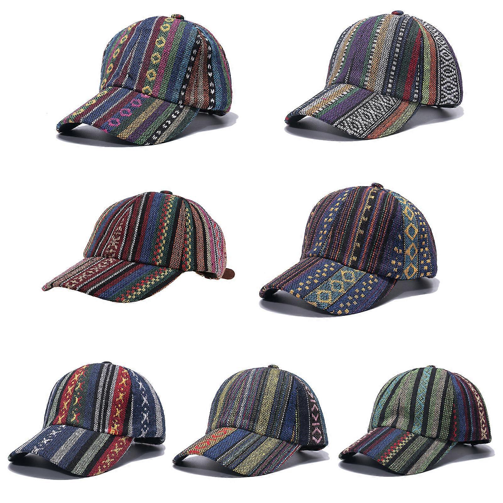 Fashion Colorful Boho Baseball Cap Vintage Striped Geometric Peaked Cap Ethnic Style for Sun Hat for Friend Gatherings F