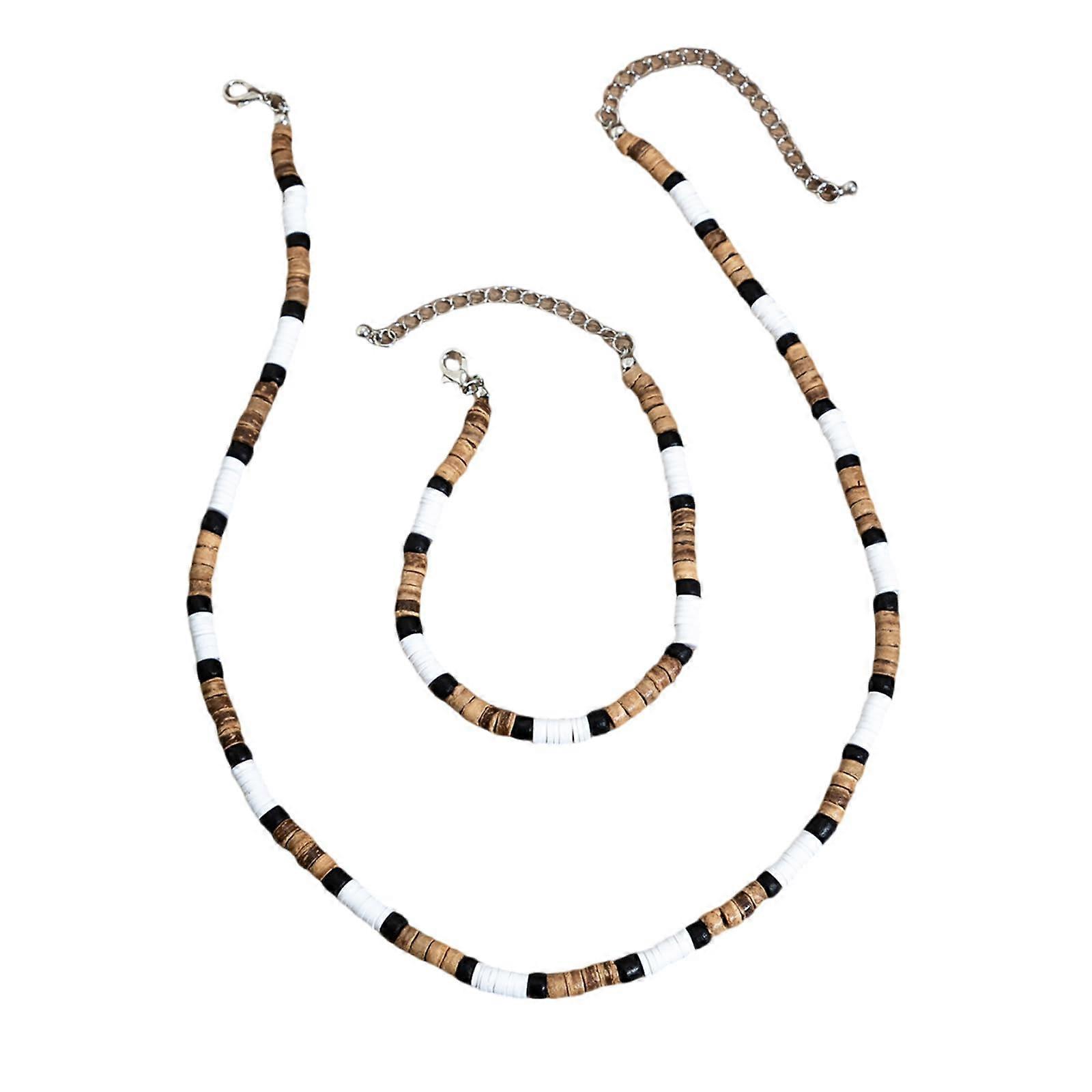 Fashion Coconuts Shell Wood Necklace Bracelet Set for Beach Lovers, Casual Wear, Bohemian Style Accessories