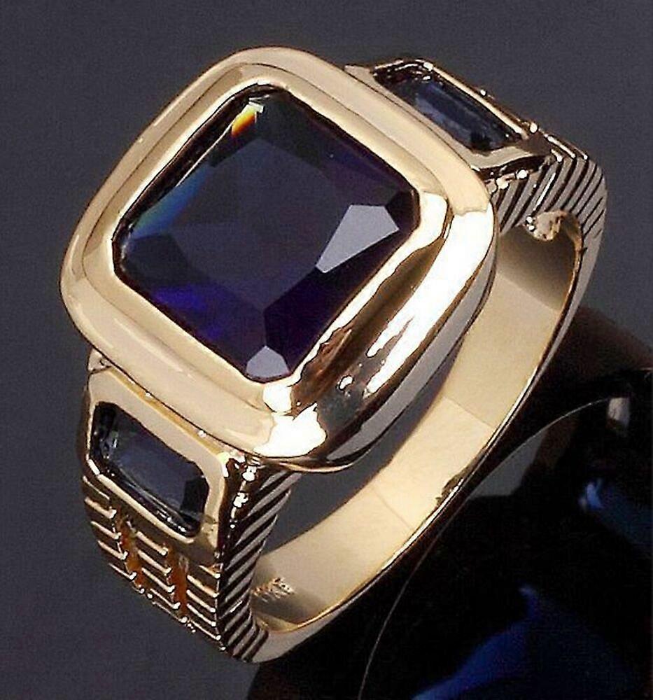 Fashion Size 12 Jewelry Luxury Blue Topaz 18K Gold Filled Mens Engagement Ring
