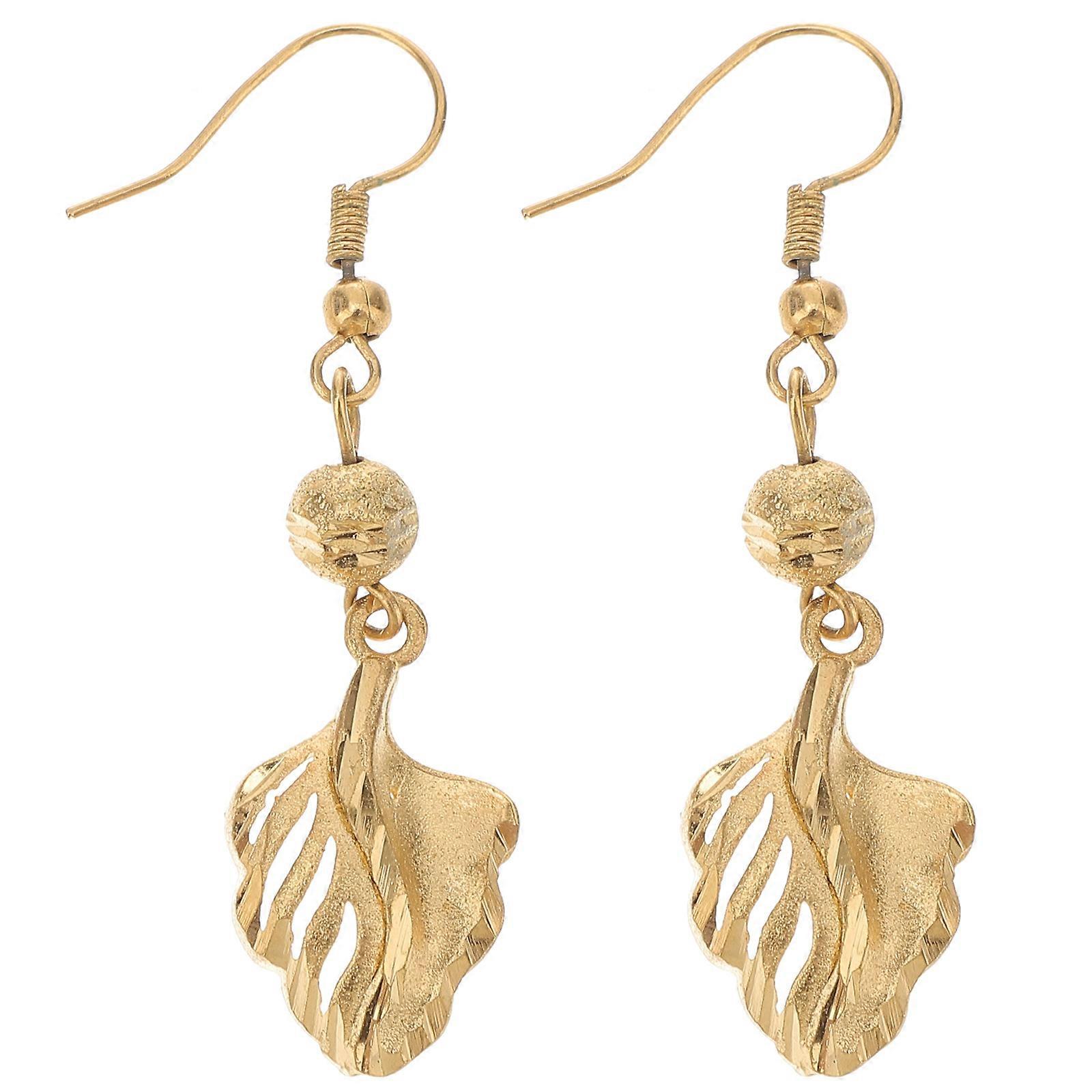 Fashion Jewelry Leaf Shaped Earrings Women Ear Pendants Golden 7x1.5cm 18K Gold Plating Simple Fashion Party 1 Pair