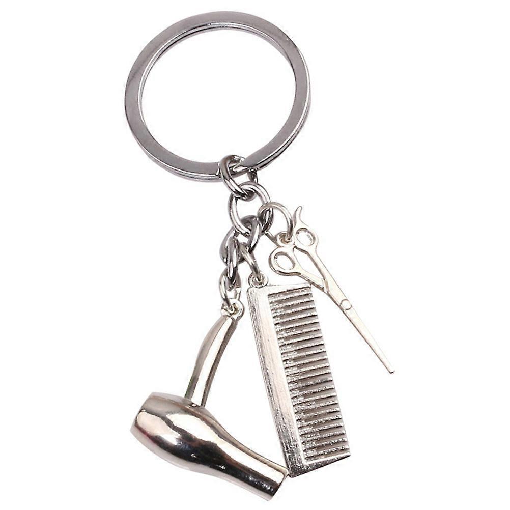 Fashion Jewelry 3 in 1 Hairdresser Wash Cut Blow Pendant Key Ring Silver