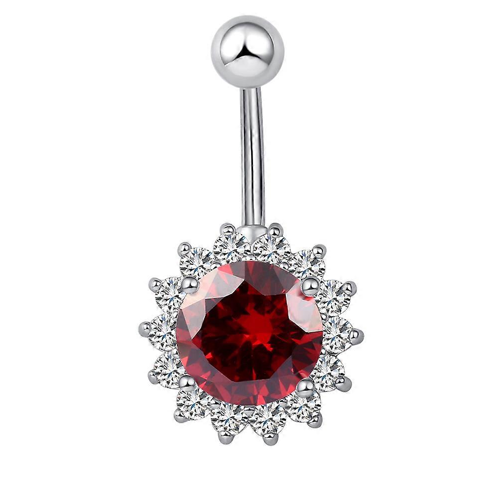 Fashion Stainless Steel Sun Flower Gear Zircon Belly Navel Ring Piercing Jewelry(Red)