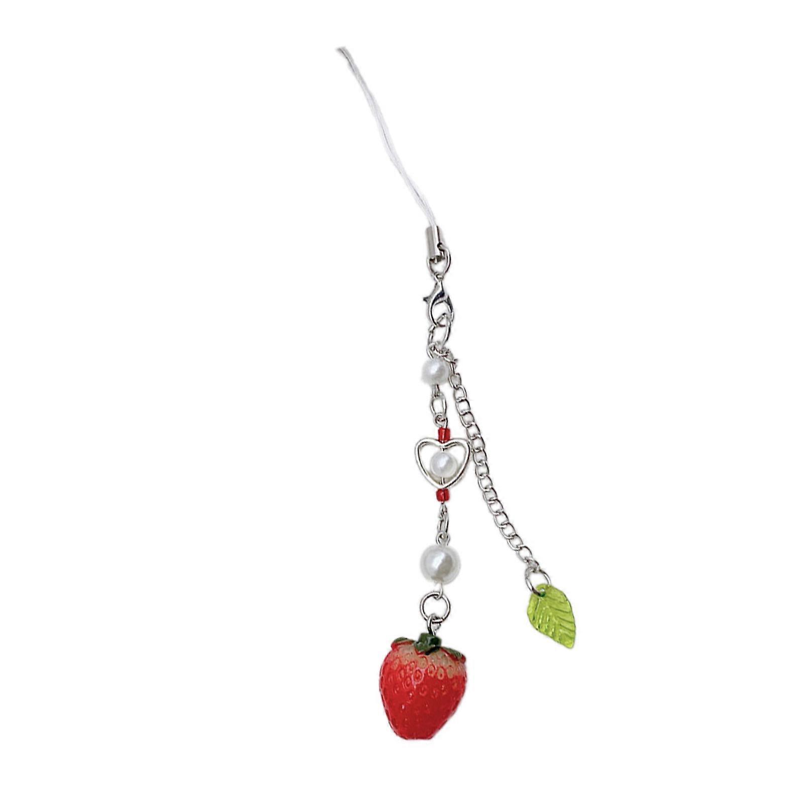 Fashion Strawberry Bead Hangings Pendant Sweet Phone Strap Bag Decoration Portable Hangings Lanyard for Girls Women
