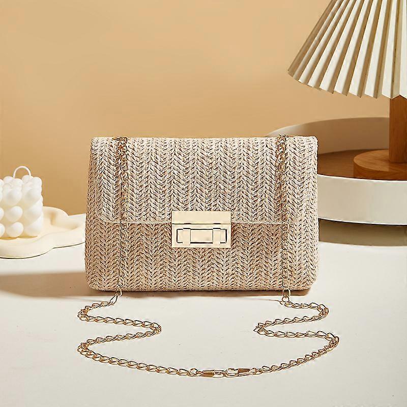 Fashion Straw Women Chain Shoulder Bag Woven High Capacity Buckle Closure Clutch Handmade Crossbody Bag Women