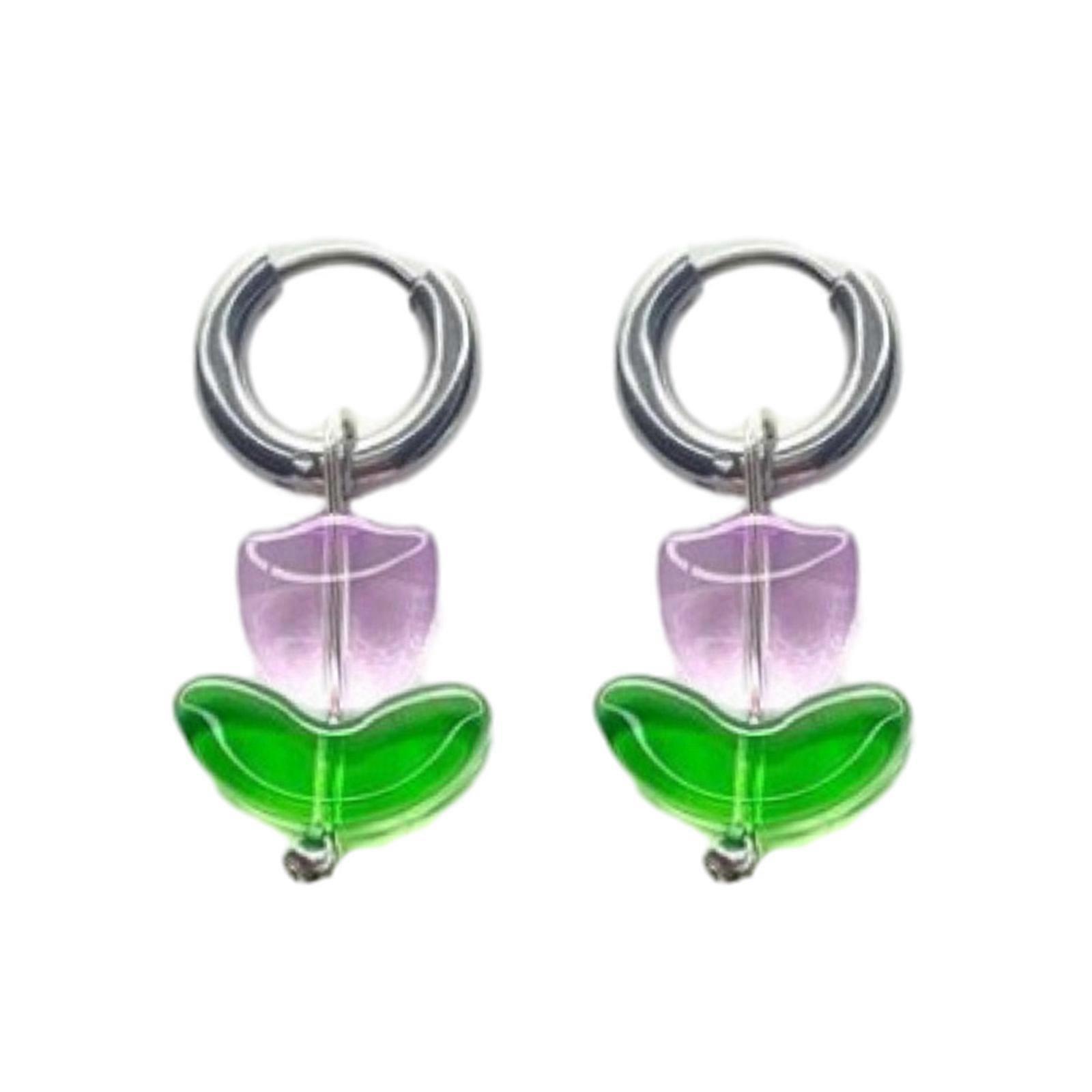 Fashion Dangle Earrings Small Hoop Earrings Simple Glaze Tulips Flower Pendant Earrings Statement Jewelry for Women Girl Purple