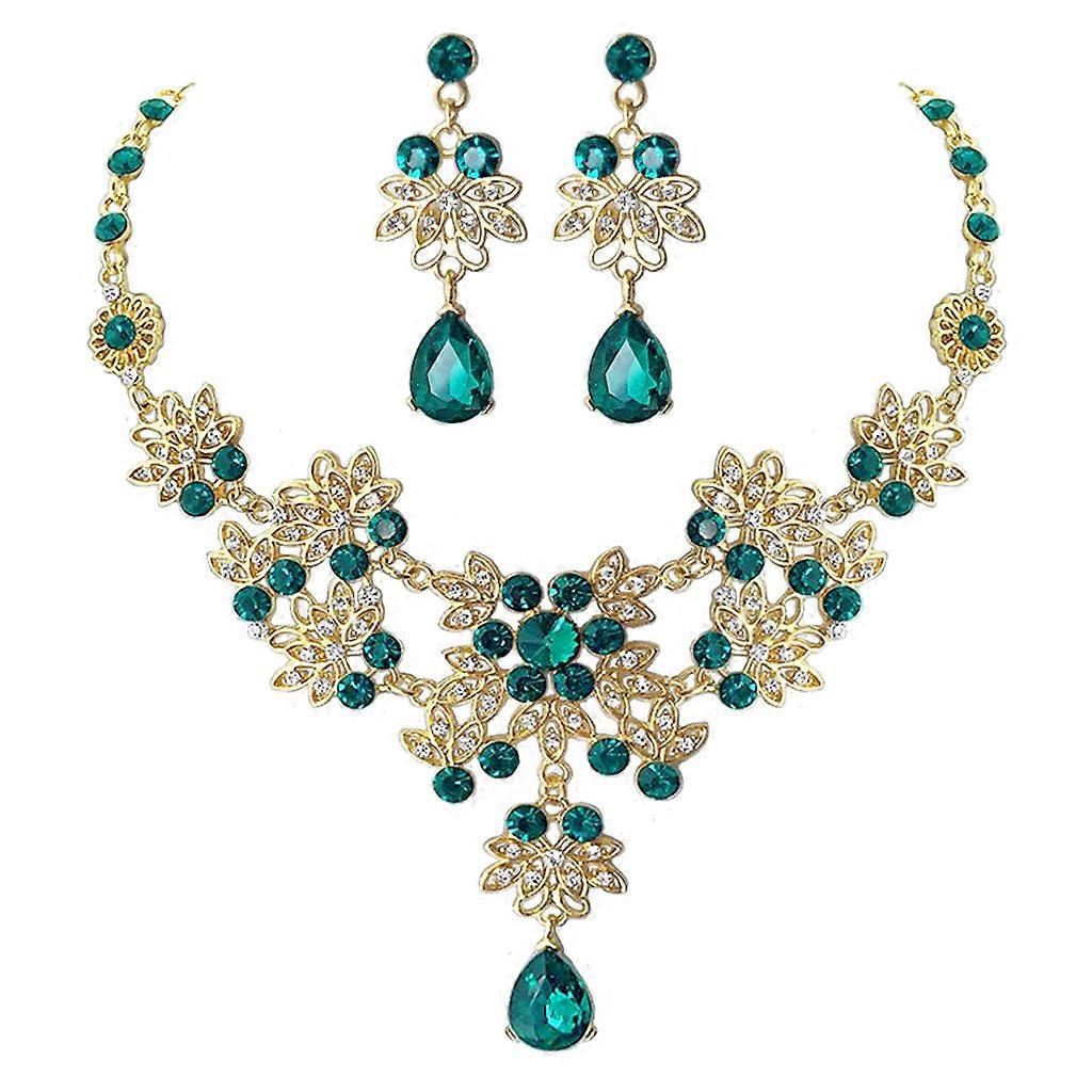 Fashion Teardrop Cluster Necklace and Earrings Jewelry Set for Proposal Party