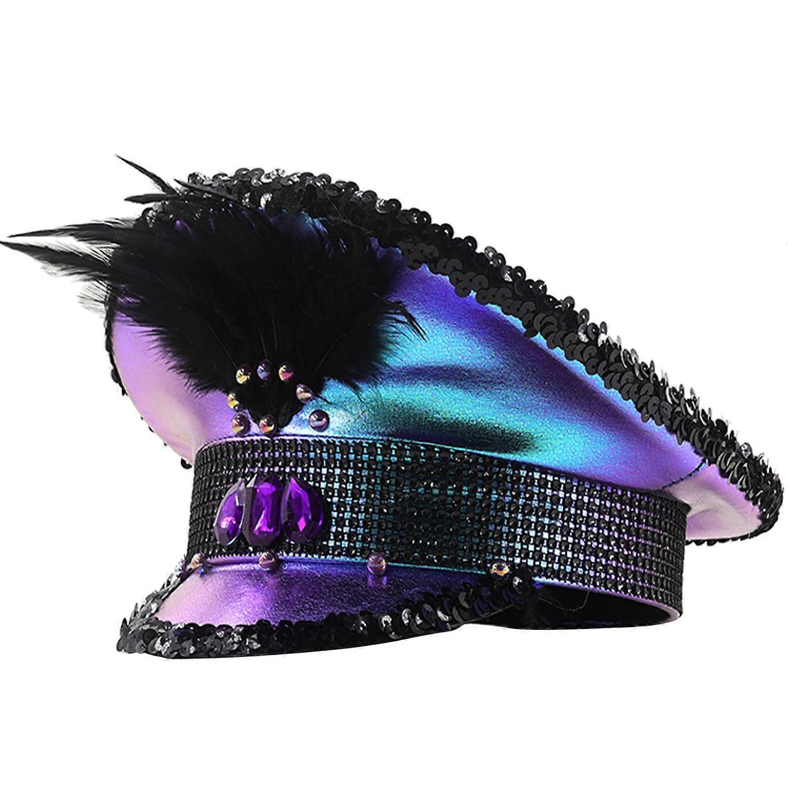 Fashion Performances Hat Proms Party Military Adult Hat with Sequins/ Rhinestones Hat for Carnivals Bachelorettes Party Purple