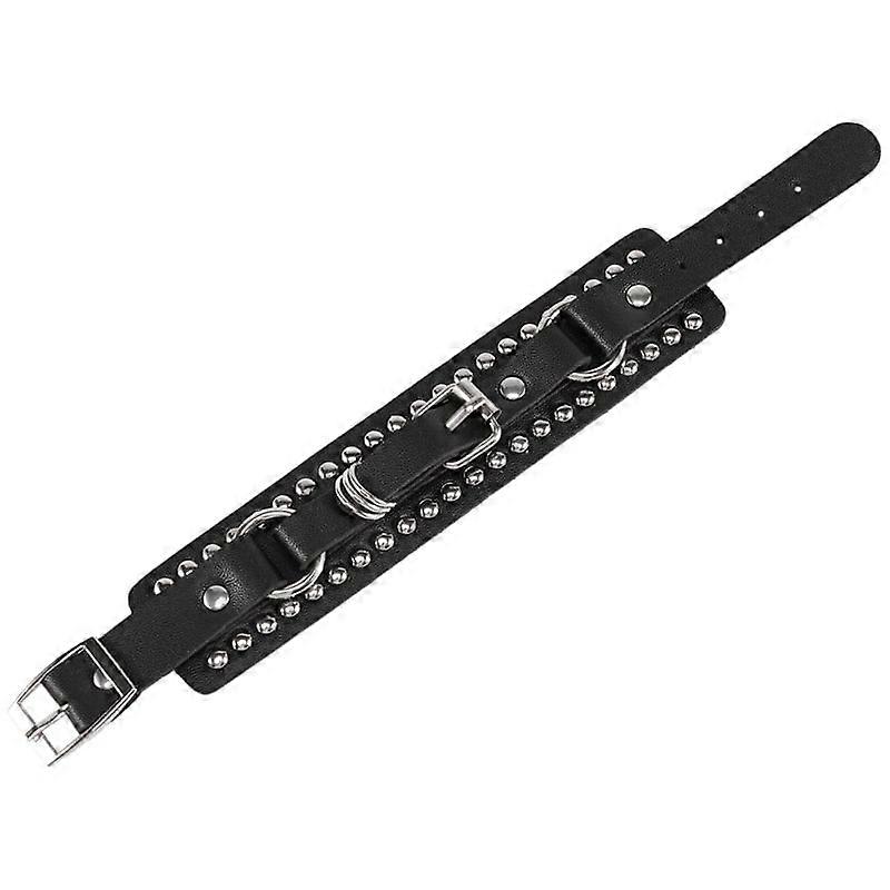 Fashion Punk Rivet Stud Fashion Unisex Leather Belt Bangle Bracelet (Black)