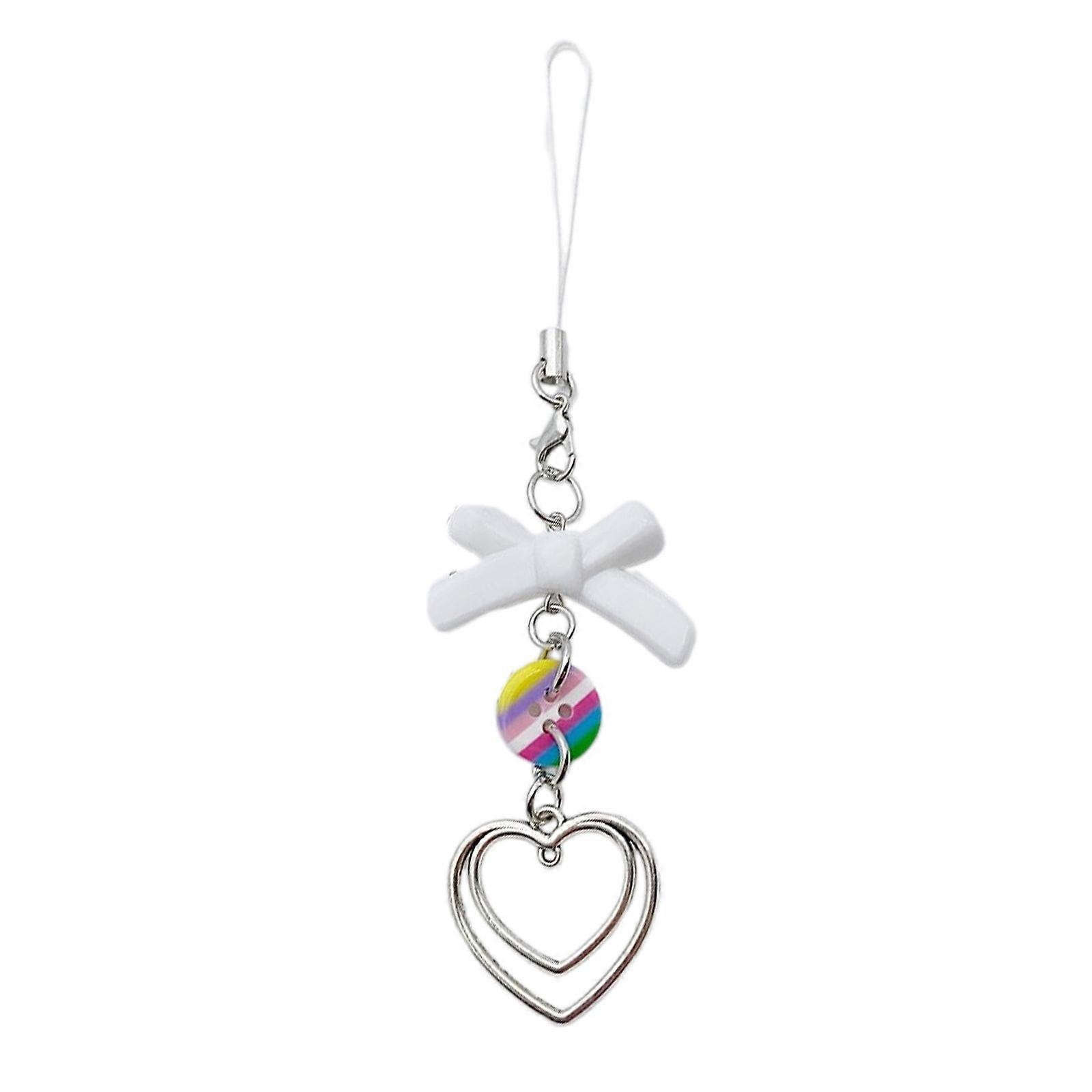Heart Bowknot Bead Pendant Phone Charm Hangings Rope Sweet Phone Chain Strap Bag Decoration Lanyard Keychain Accessory