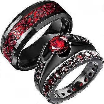 ファッションブラックタングステンウェディングケルトドラゴンリング、グリーン / レッドジルコニアパンクメンズステンレススチールカーボンファイバーカップルリング付き