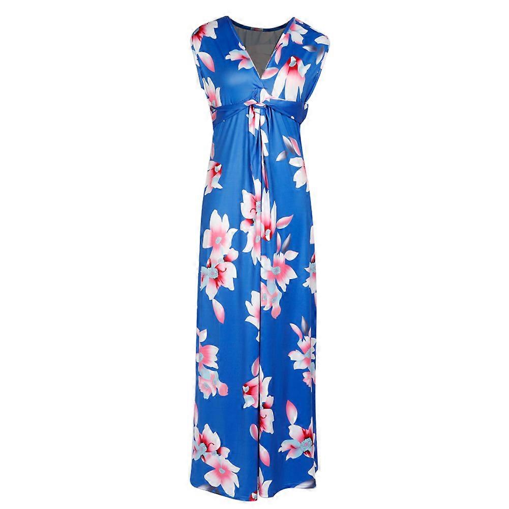 Fashion Floral Print Dress Sexy V-Neck Sleeveless Long Length Dress for Pregnant Women (XL)