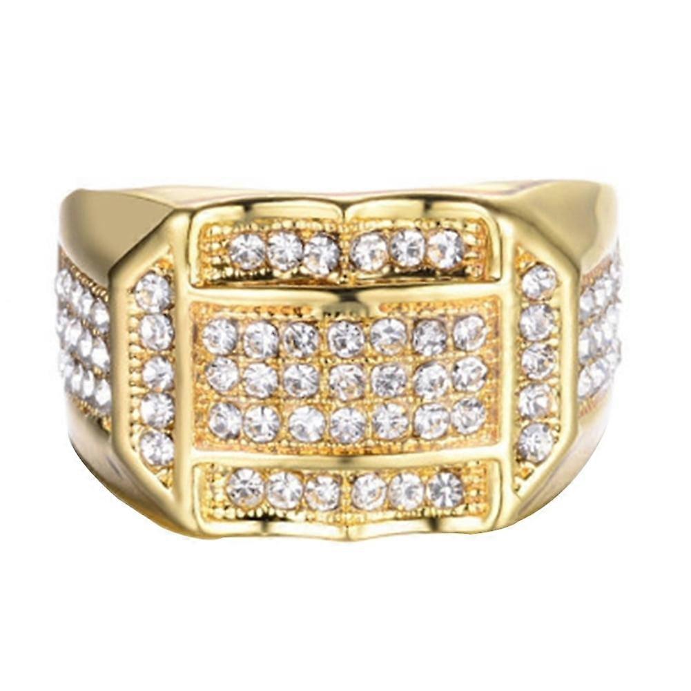 Fashion Men Rhinestone Inlaid Geometric Finger Ring Wedding Party Jewelry Gift