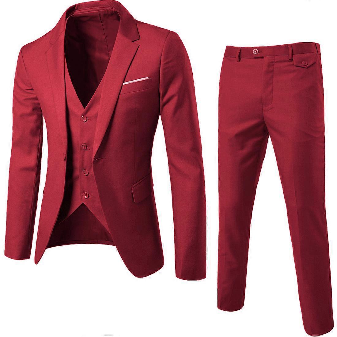 Fashion Men's 3 Piece Slim Fit Suit Set One Button Solid Jacket Vest Pants Business Set