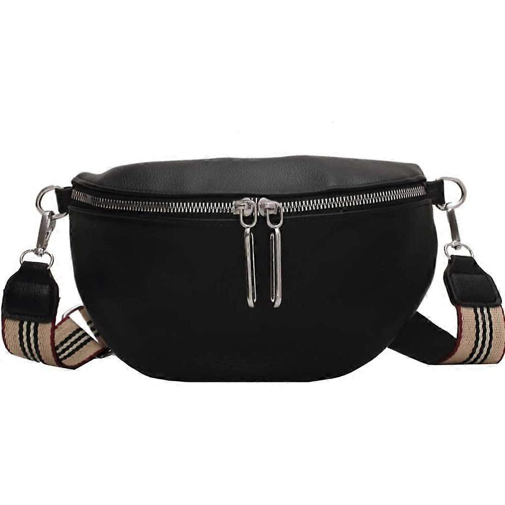 Fashion Leather Waist Bag Shoulder Bag Solid Women's Chest Bag for Festival Travel Small Waist Bag Crossbody Women with Fabric Bag Strap, black, 23CM*