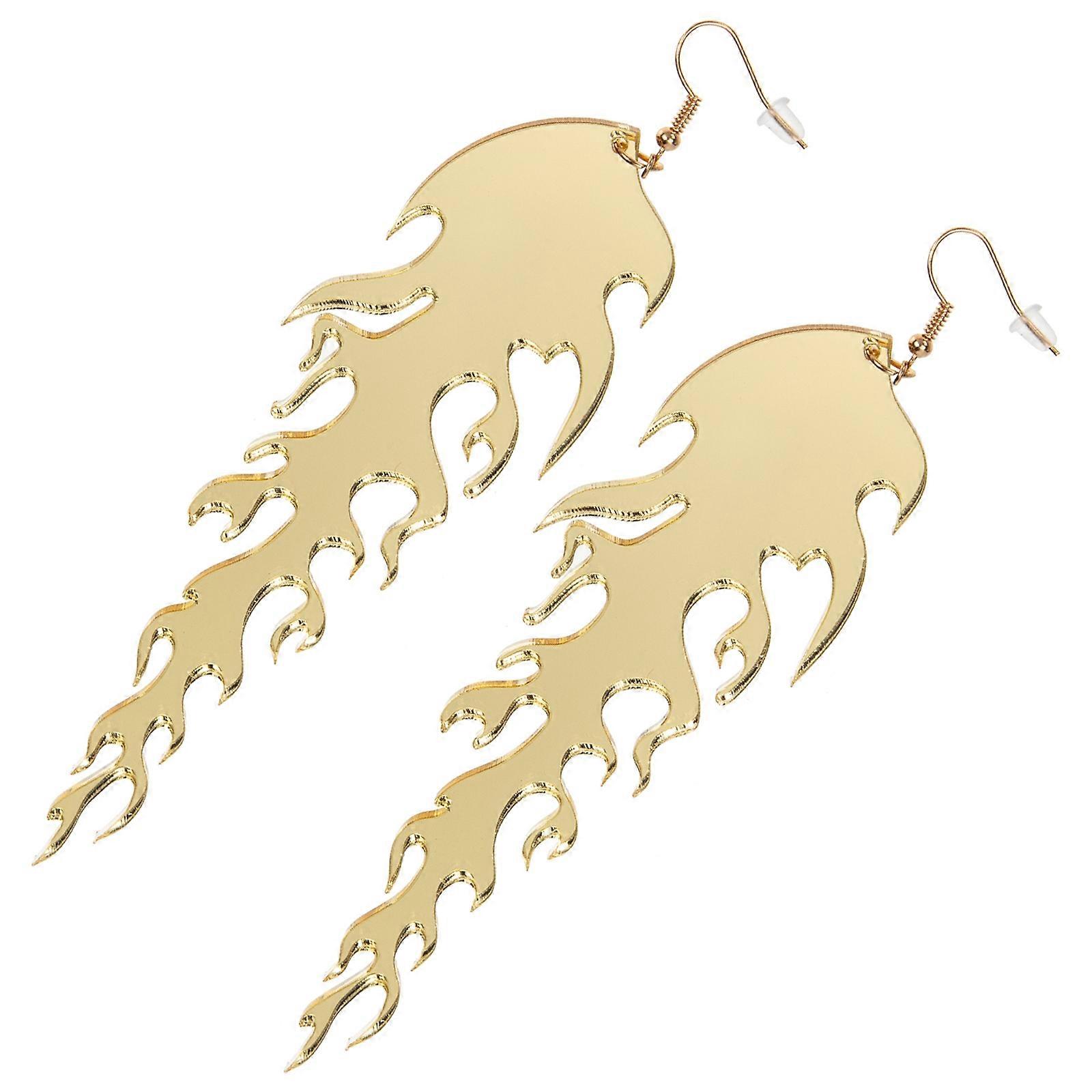 Fashion Lady Earrings Flame Shaped Dangle Earring Women Ear Jewelry Daily Wear Golden 13 3x4cm 1 Pair
