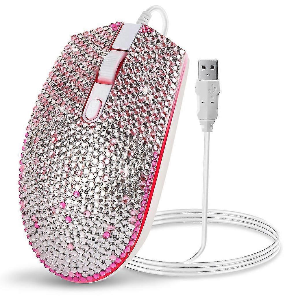 Fashion Wired Mouse, Rhinestone Corded Mouse with 7 Colors LED Backlit for Girls