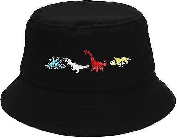 Fashion Embroidered Bucket Hat Fisherman Hat Men Women,Dinosaur