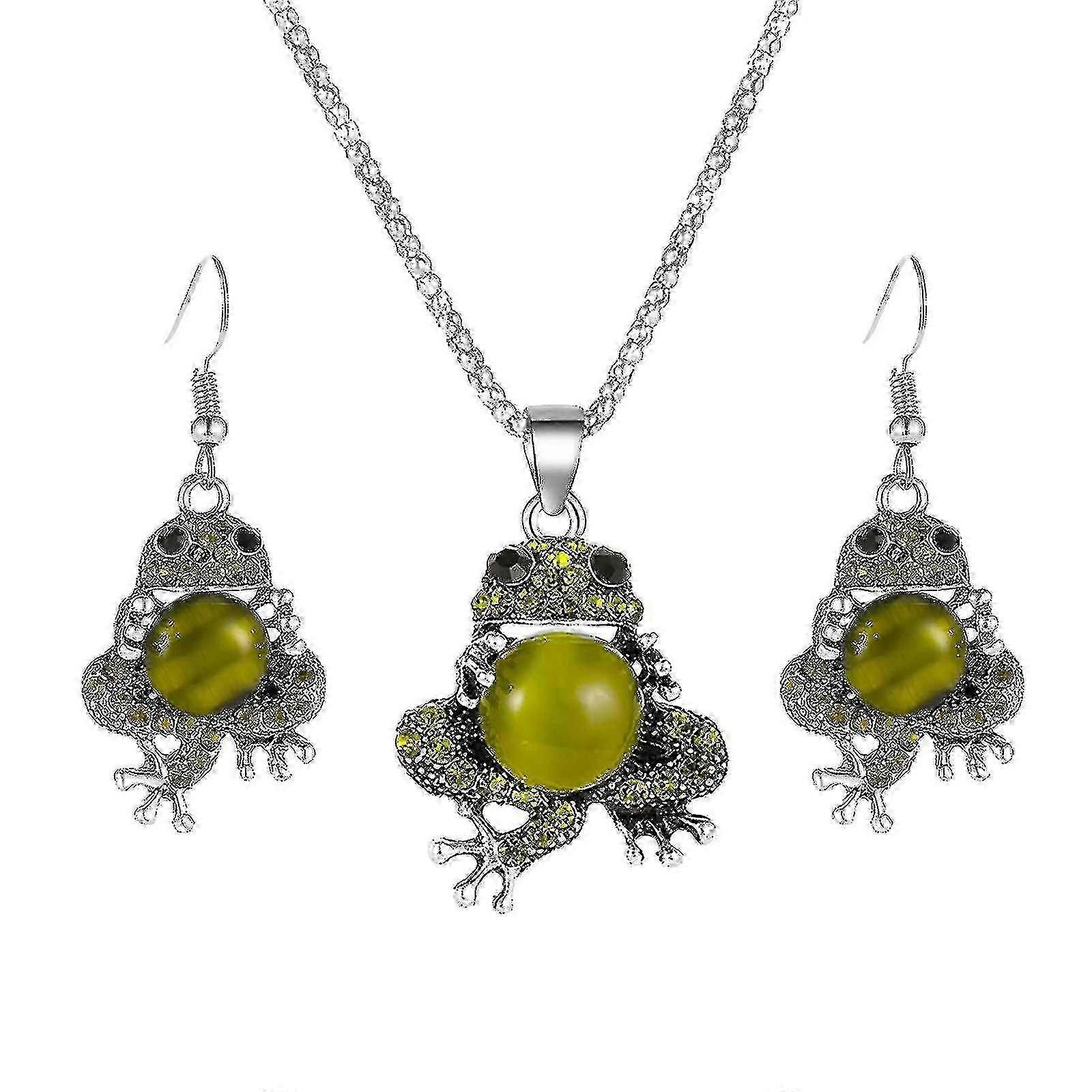 Fashion Animal Jewelry Opal Frogs Toads Earrings Necklace Jewelry Set May 5.30