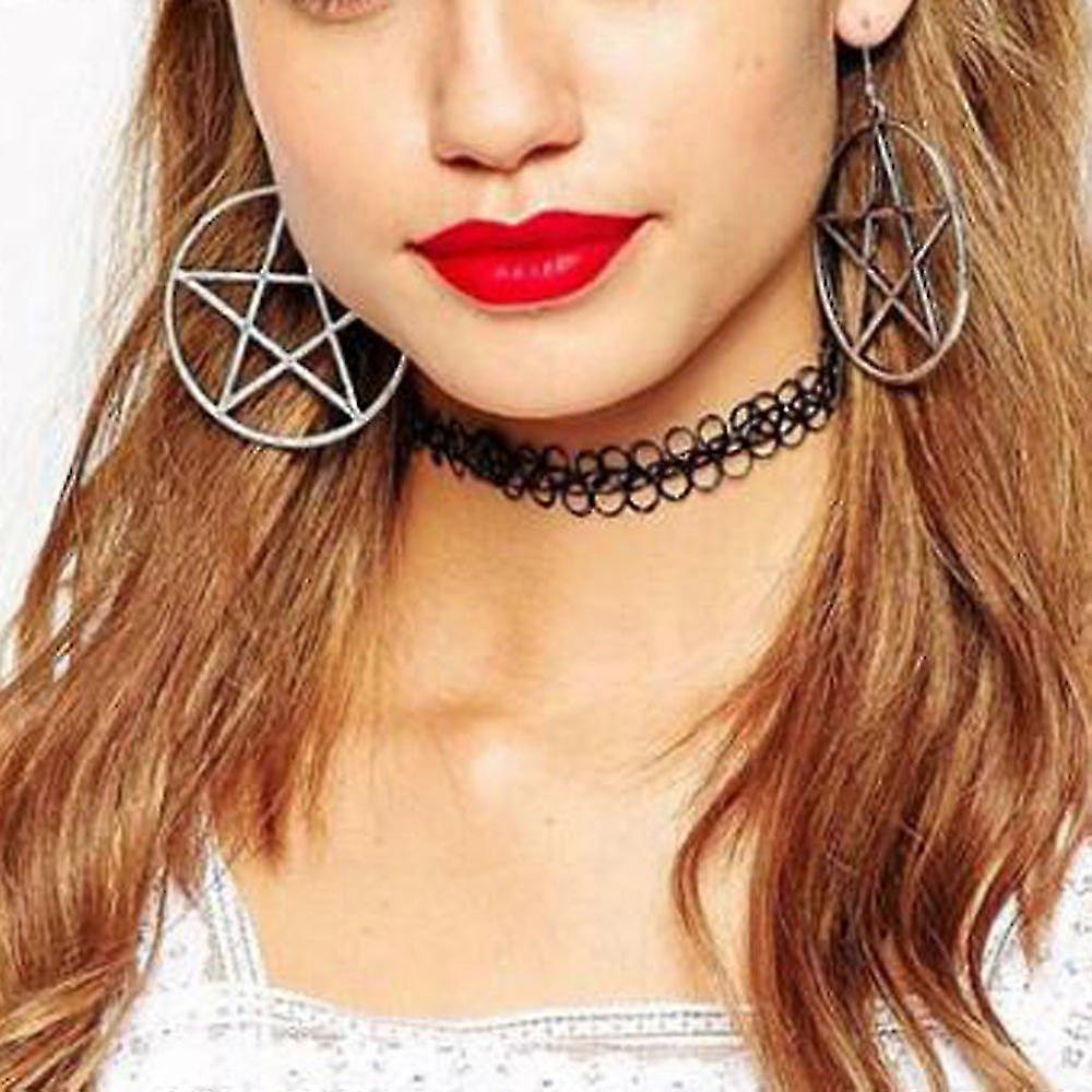 Fashion Women Vintage Silver Pentacle Pendant Dangles Earrings For Girl Women