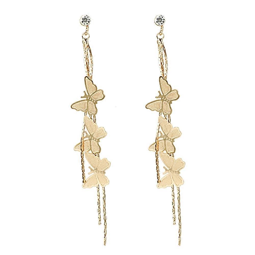Fashion Women Butterfly Tassel Long Dangle Rhinestone Stud Earrings Jewelry