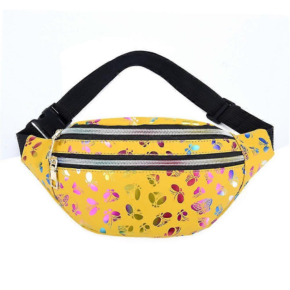Fashion Women Print Double Zipper Waist Bag Crossbody Bag Waist Bag-yellow