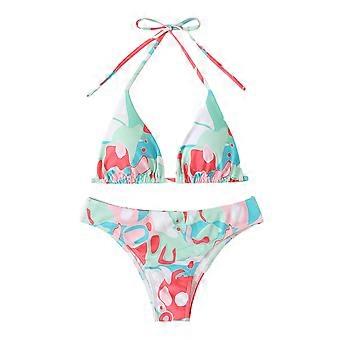 Fashion Women Swimsuit Deep V Neck Cutout for Cross Bikini Top High Waisted Briefs Shorts Two Piece Bathing Suits Swimsu watermelon red XL