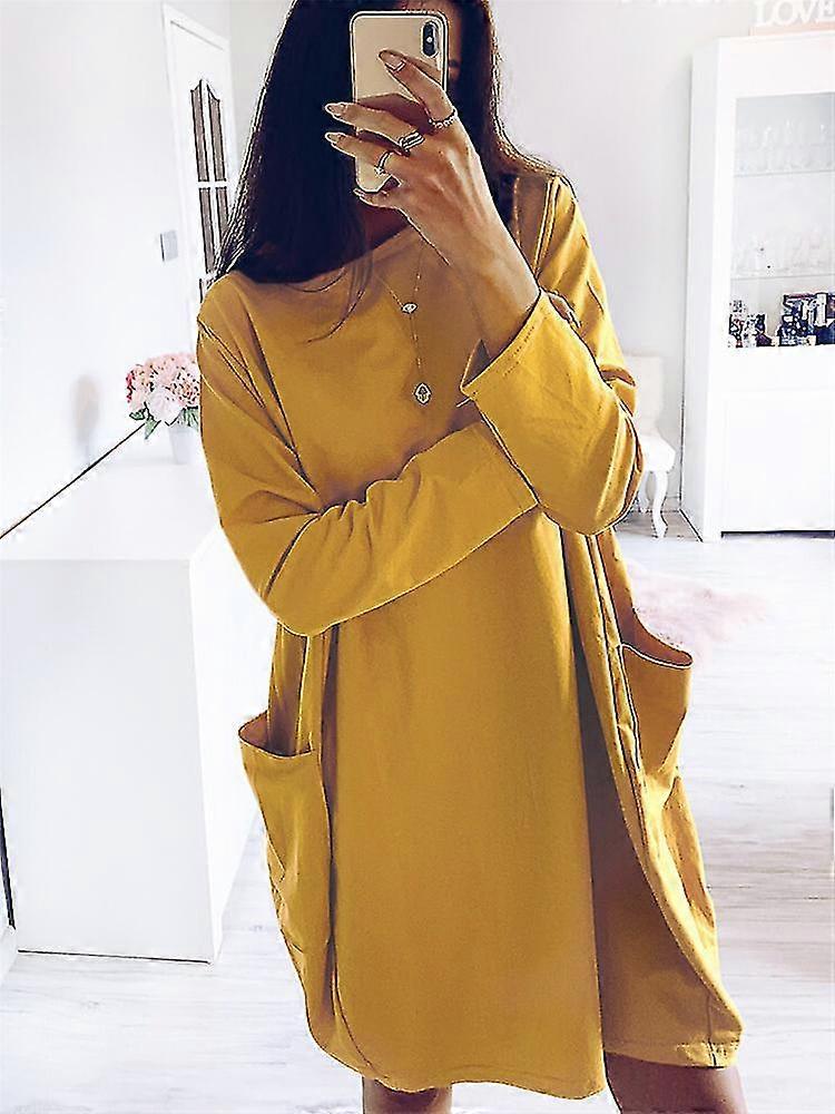 Fashion Women Autumn Loose Mini Dress Elegant Long Sleeve Ladies Casual Plain Dresses With Pockets Dames Classic Streetwear