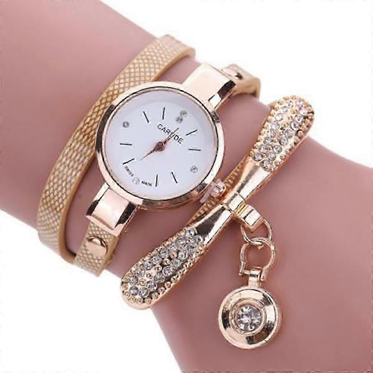 Fashion Women PU Leather Watch Analog Quartz Movement Bracelet Pendant Wrist Watches &My
