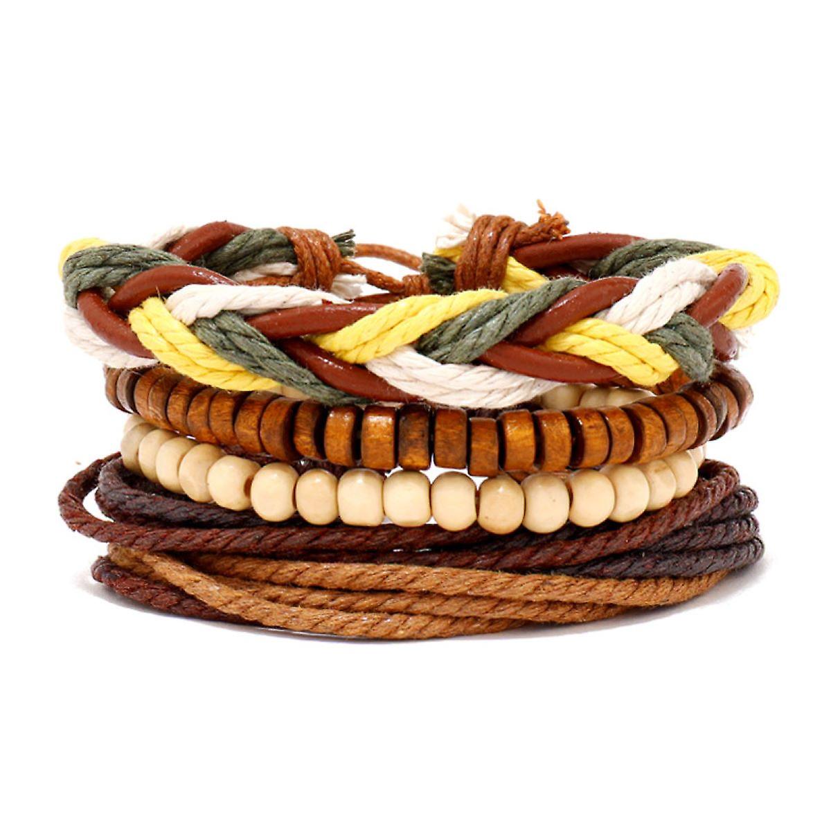 Fashion Cowhide Colorful Wood Beads Vintage Hand-woven Men's Cowhide Bracelet Bracelet Combination Accessories Charm Bracelet
