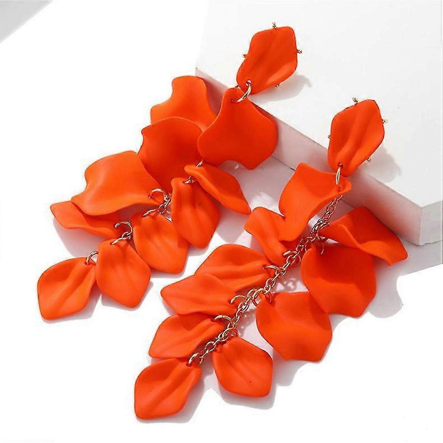 Fashion exaggerated earrings, rose petal leaf long earrings, petal earrings, suitable for PROM and other scenes