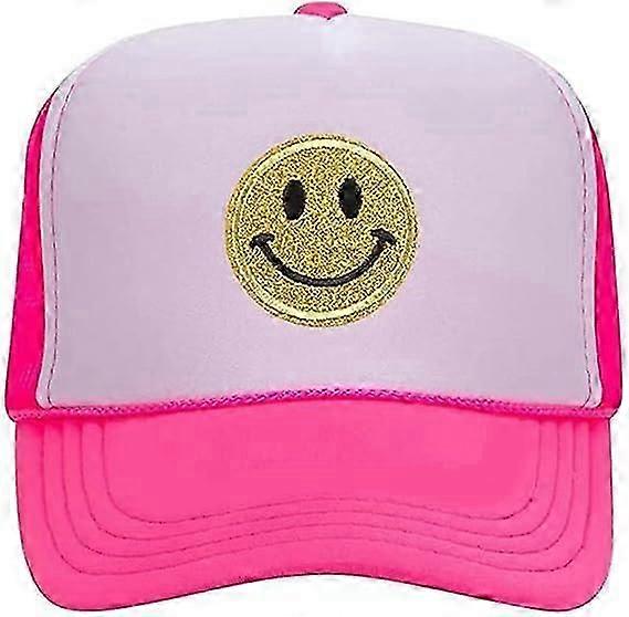 Fashion Smiley Face Sequins Printing Neon High Crown Foam Mesh Back Trucker Hat-for Men and Women red,2024 Ping