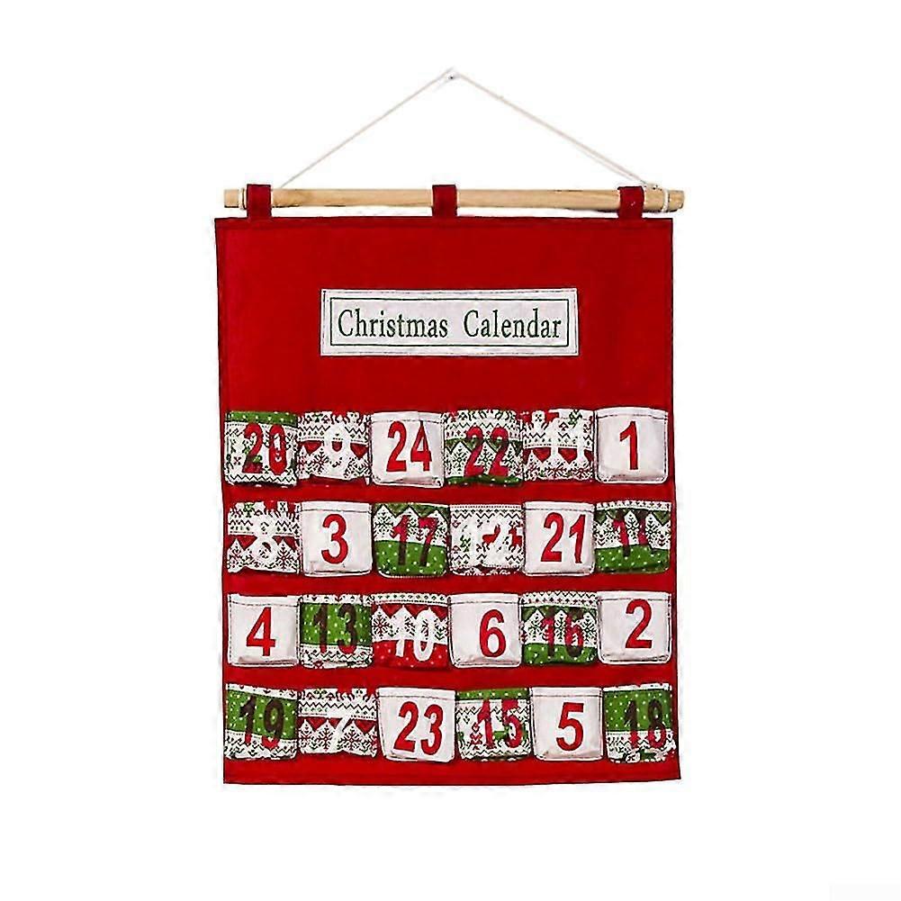 Fabric Christmas Advent Calendar,Christmas Countdown Calendar Storage Hanging Bag with 24 Pockets for Christmas Ornaments Holiday Xmas Wall Decoration