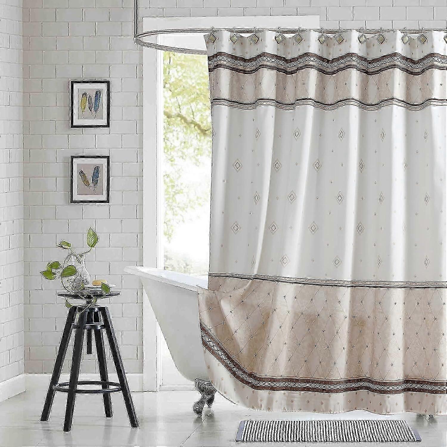 Fabric Shower Curtain, Beige Tan Stripe Bathroom Shower Curtain, Modern Decorative Bathroom Curtain, 182.88 cm W x 182.88 cm H