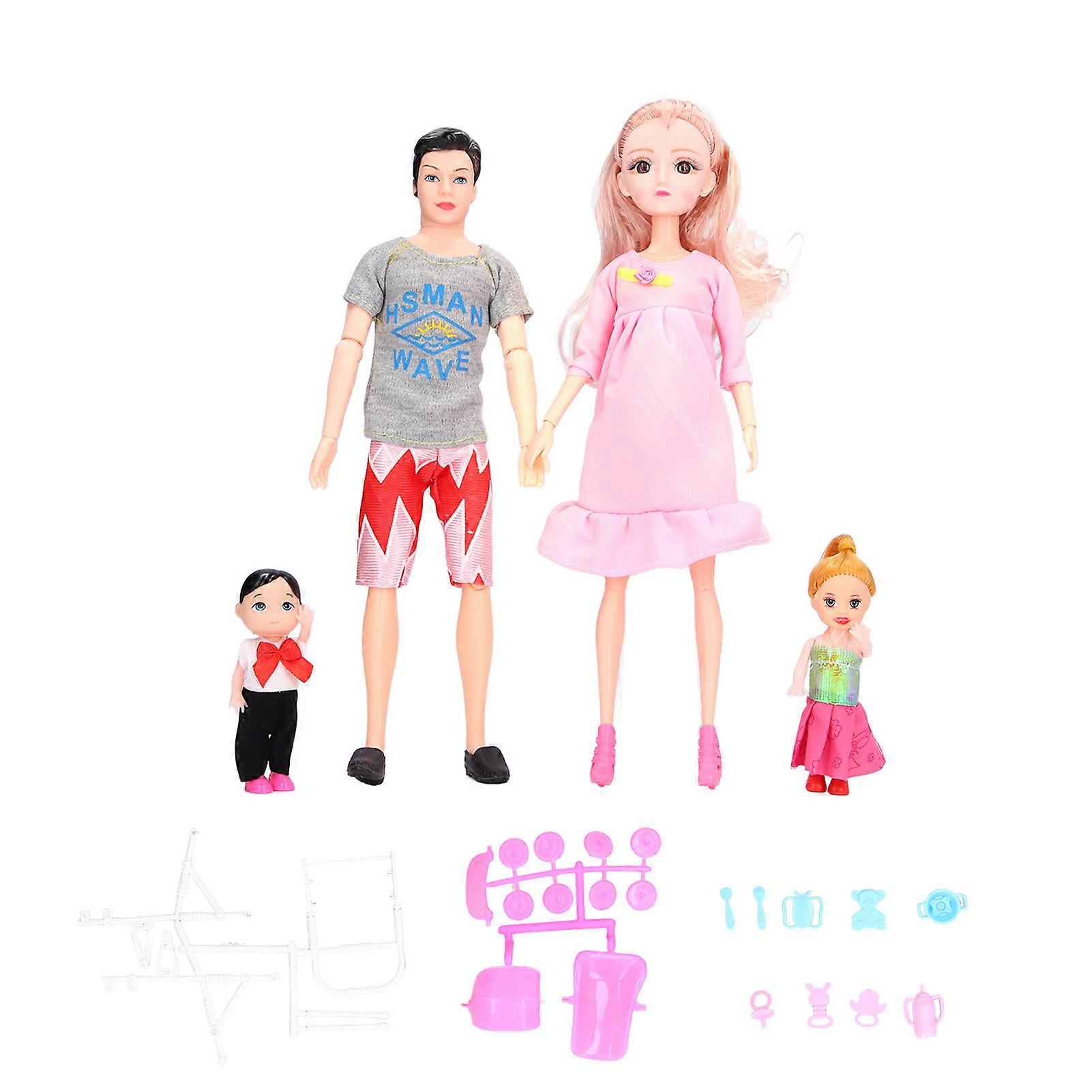 Family Doll Set Kids Cute Dad Pregnant Mom Son Daughter Baby Doll with Accessories Holiday Gift