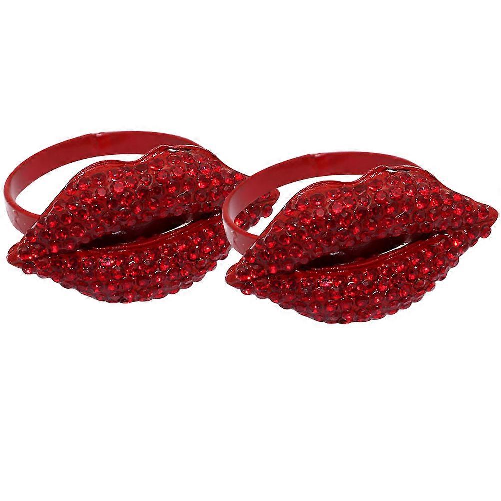 Fancy Napkin Rings Metal Dining Decors Lip Shape Design Red 4.5X4X2.5CM Banquet 2Pcs