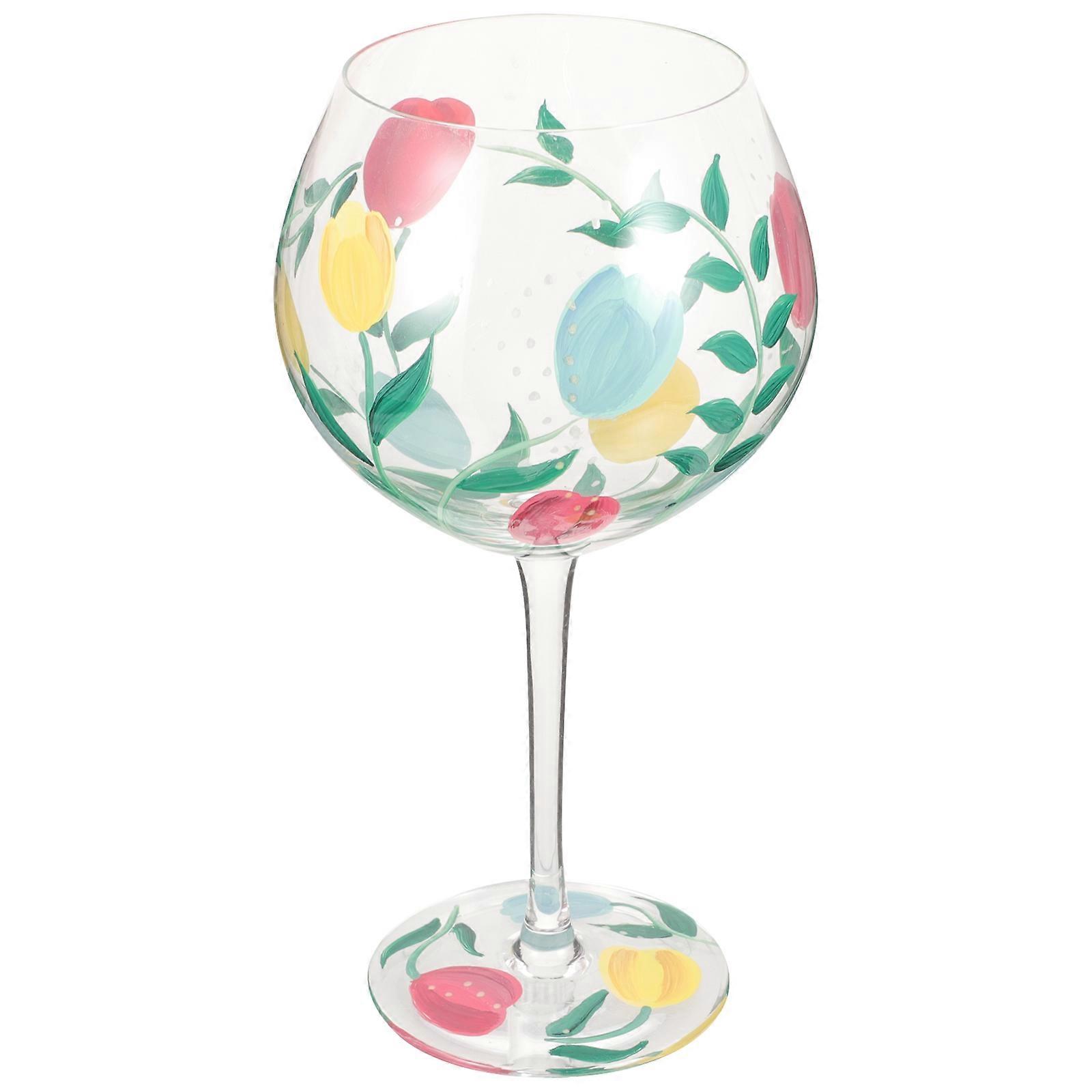 The long stem of the wine glass not only adds to its elegance but also helps to keep your drink at the suitable temperature by preventing your hand from warming the bowl of the glass. The sturdy base also prevents it from tipping over easily, ensuring that you can enjoy your drink without any spills or accidents. Features - -Material:Glass - Size: 21.00X8.50X8.50cm/8.25X3.34X3.34in -Capacity:630ml -The unique and eye-catching design of the glass will add a touch of elegance and style to any occasion. -The hand printed pictures on the glass are delicate and lifelike, adding a natural and beautiful touch to your home decor. -The glass is lightweight, making it easy to carry and handle, allowing you to enjoy your drinks anytime, anywhere. -The long stem of the glass helps to keep the temperature of the wine at the optimal stage, ensuring that it remains cool and refreshing. -The glass can be used for both formal and informal occasions, making it a versatile choice for any setting. Package list: 1 x balloon wine glass