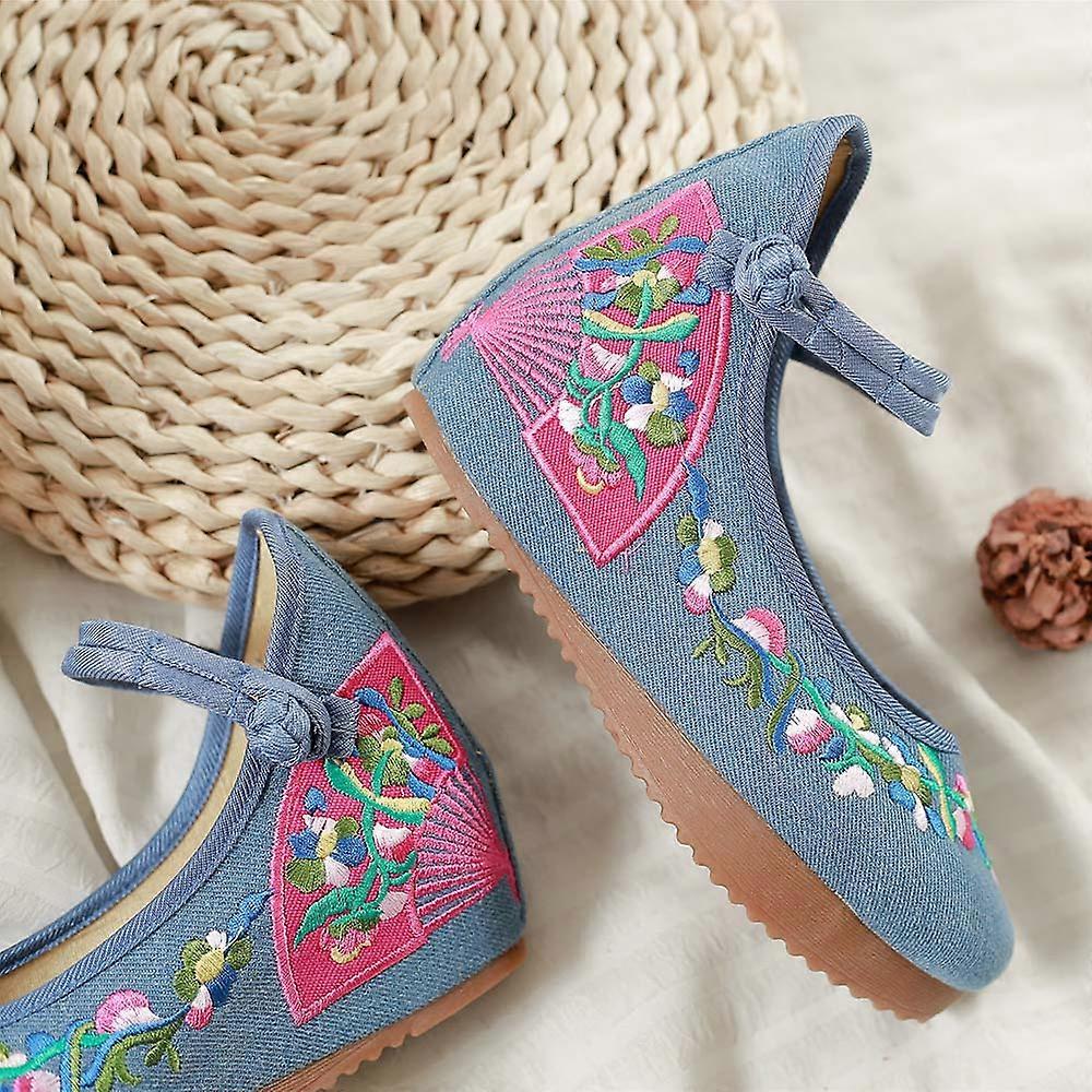 Fan pure oxford bottom slope heel heightening and thickening cloth shoes women's single shoes