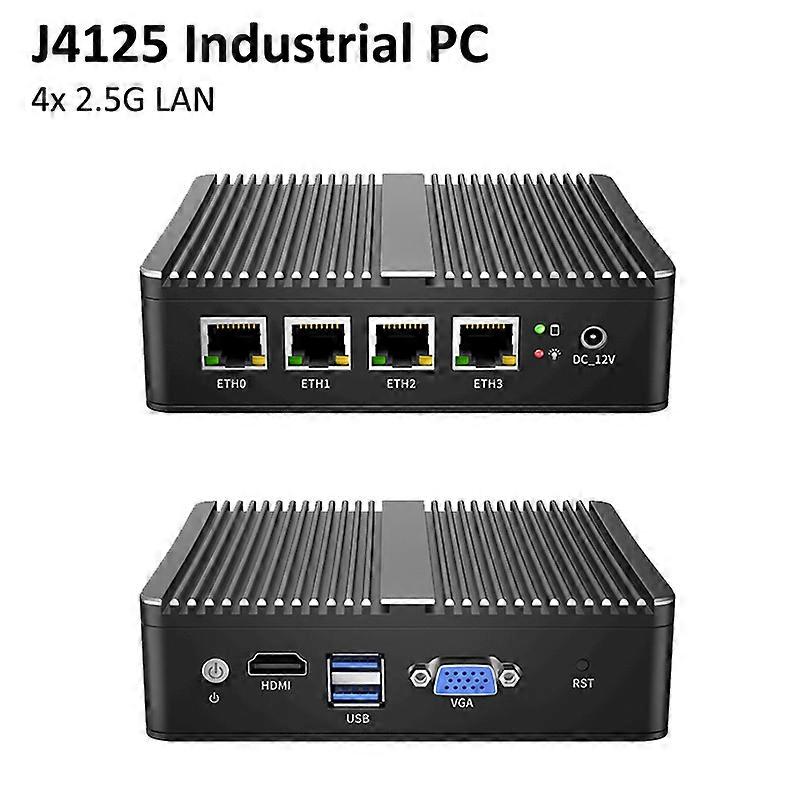 Fanless Soft Router Intel Celeron J4125 Mini PC Quad Core 4x Intel i225 2.5G LAN HDMI VGA pfSense Firewall Appliance ESXI AES-NI