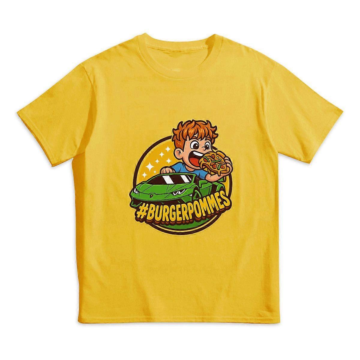Fast Food & Supercar Kids T-Shirt #BURGERPOMMES Cartoon Tee Pizza & Lambo Graphic Top for Boys