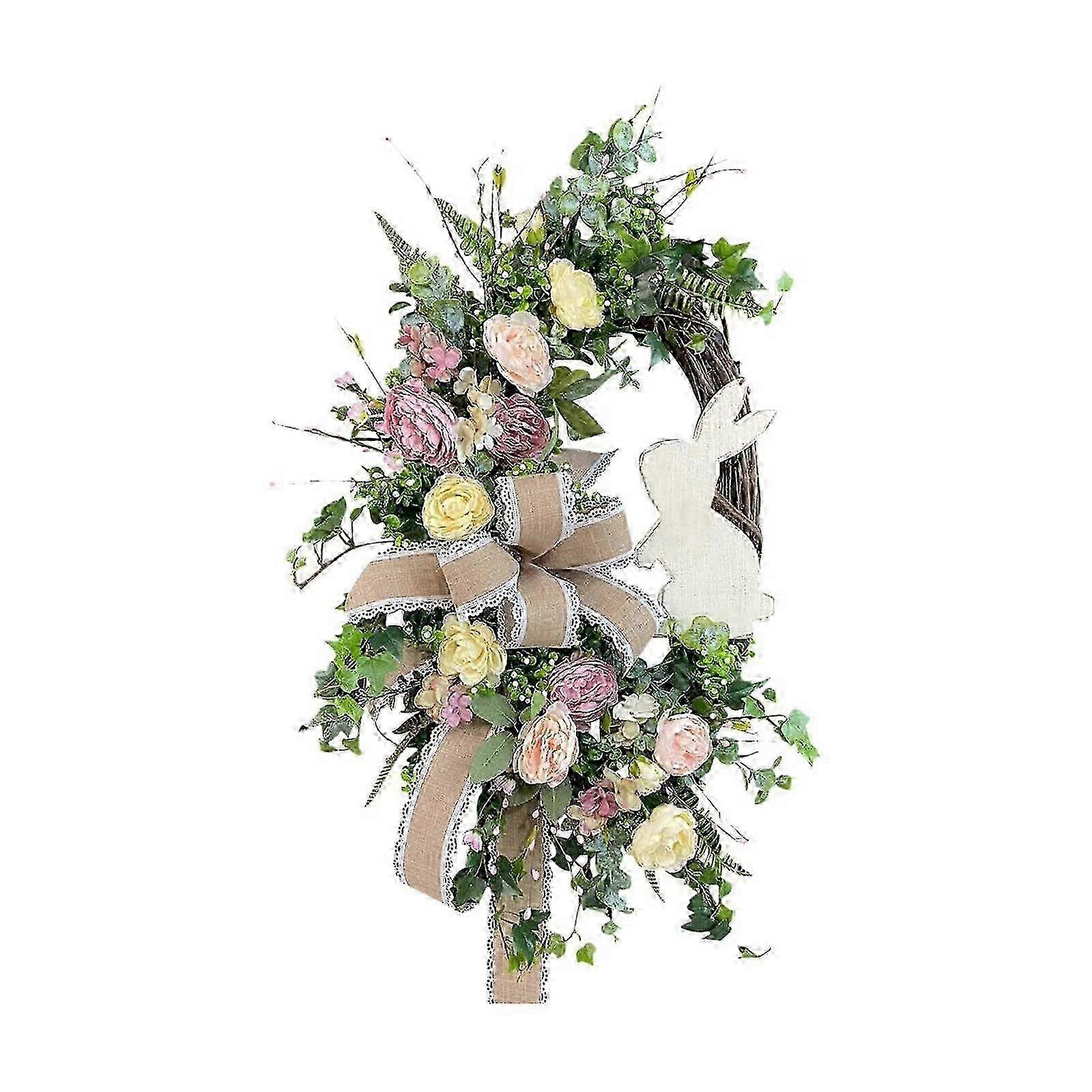 Farmhouse Easter Wreath - Burlap Garland with Lights & Bow for Front Door & Summer Decor