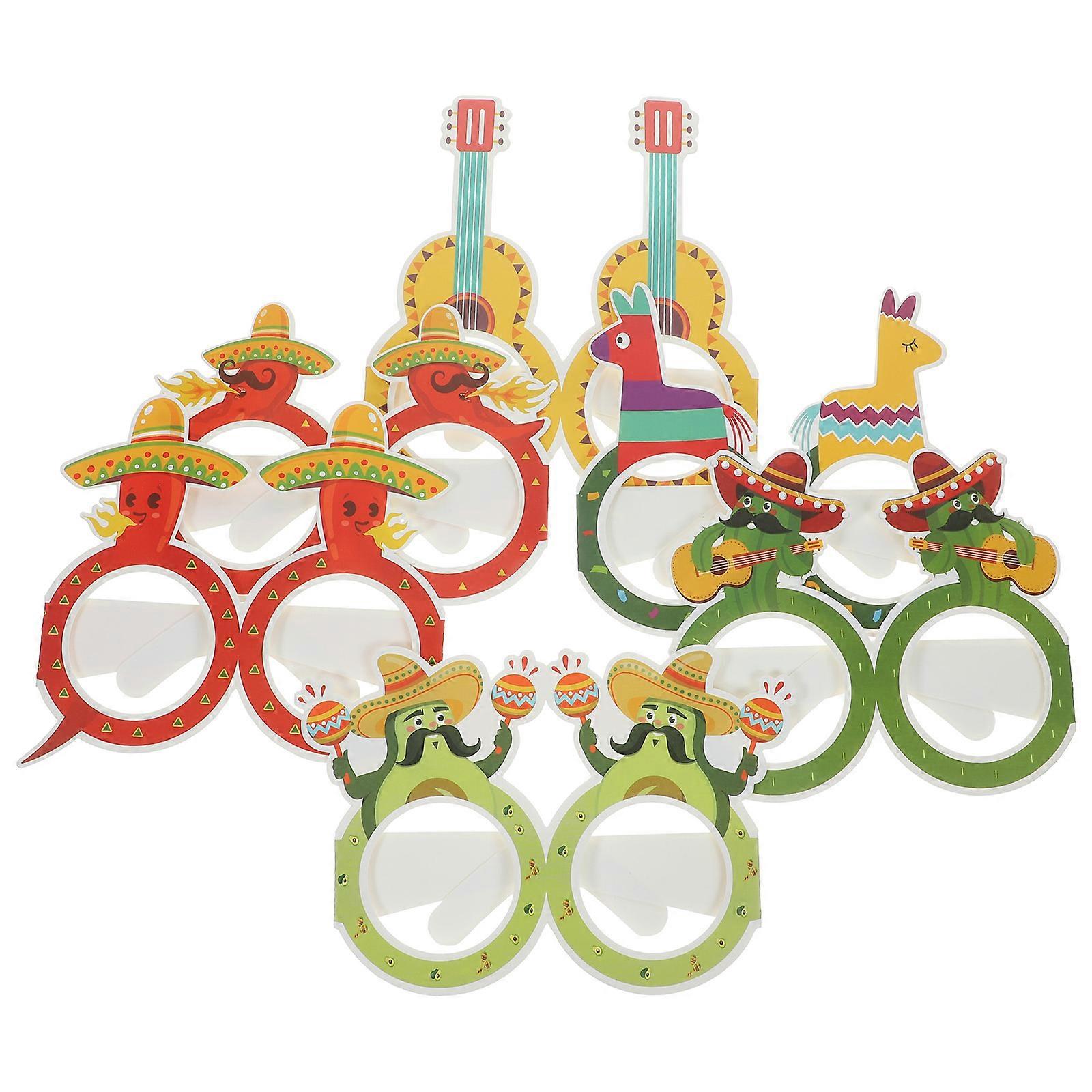 Fiesta Party Supplies Mexican Glasses Paper Eyewear Glasses Birthday Parties Assorted Color 12Pcs