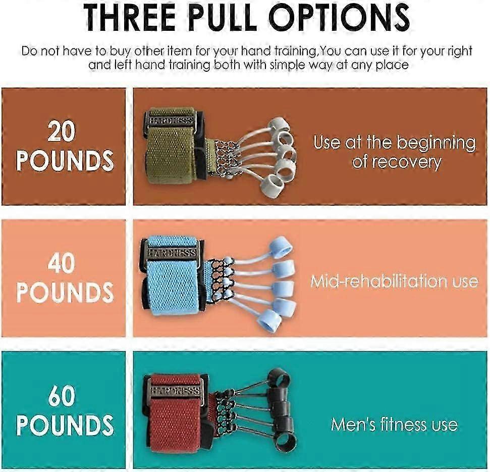 Hand yoga is used by many international professionals in various fields such as musicians, physiotherapists, doctors and technicians for a healthy hand and finger. The finger band is made of high elasticity silicone and high quality neoprene and straps make the product perfect for everyone! You can train your fingers individually or together with different tension forces applied. This perfect design allows you to maximize the range of motion when exercising Adjustable The bracelet can be worn by anyone with a comfortable fit, regardless of wrist circumference. You don't need to buy other items to train your hands. You can use it for your left and right hand drive easily and anywhere. Three tension options: 20 lbs, 40 lbs, 60 lbs