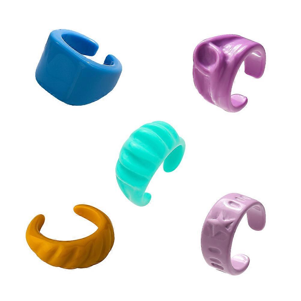 Finger Decoration Multicolor Finger Ring Decorative Ring Plastic 5Pcs