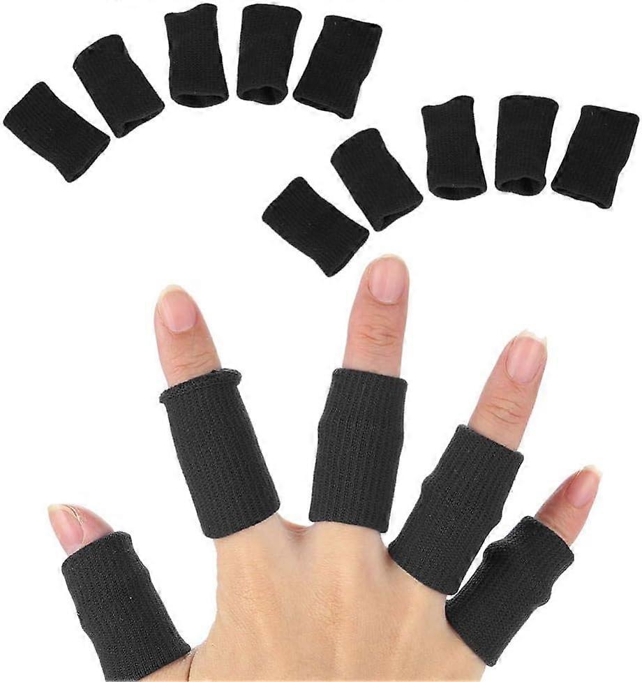 Finger Protector Sleeve, 10 Pcs Stretch Flexible Finger Splint Support Finger Protector Sports Aid Arthritis Band Wrap (Black)