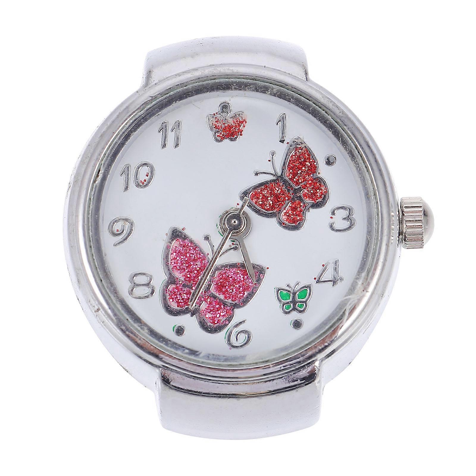 Finger Ring Watch Butterflies Embellishment Creative Finger Ring Watch Gift Silver